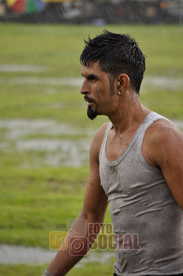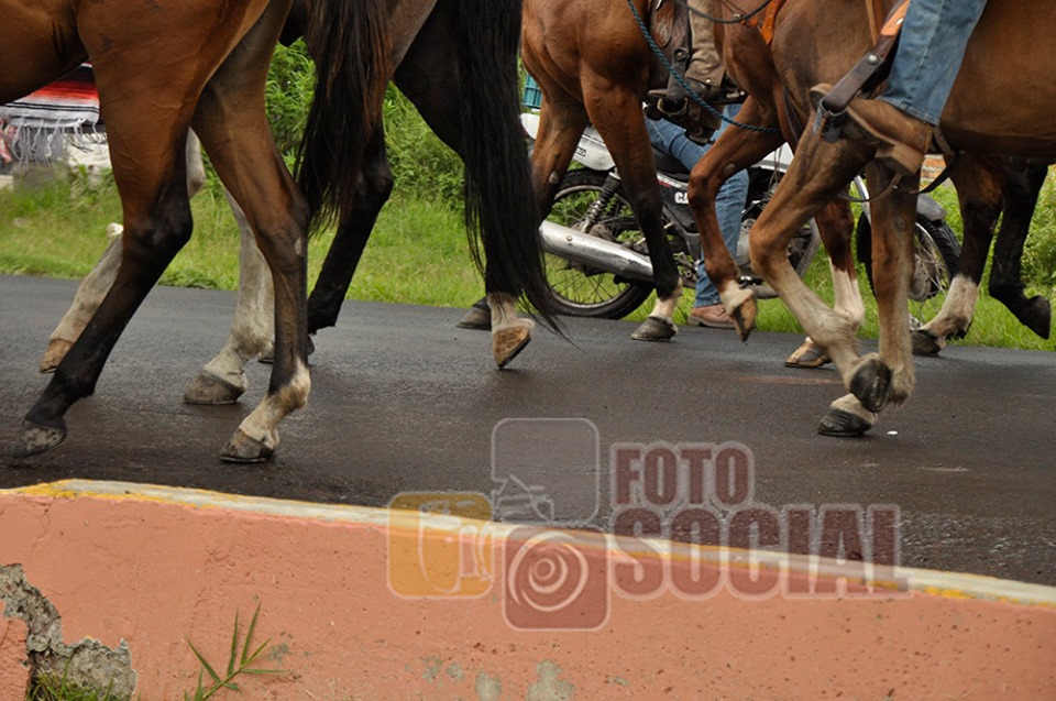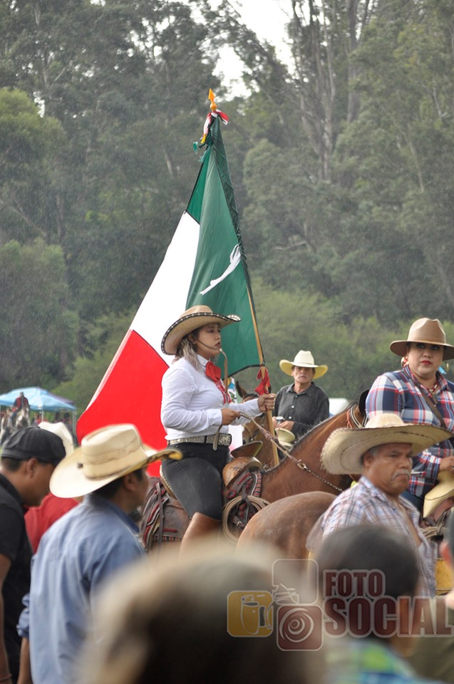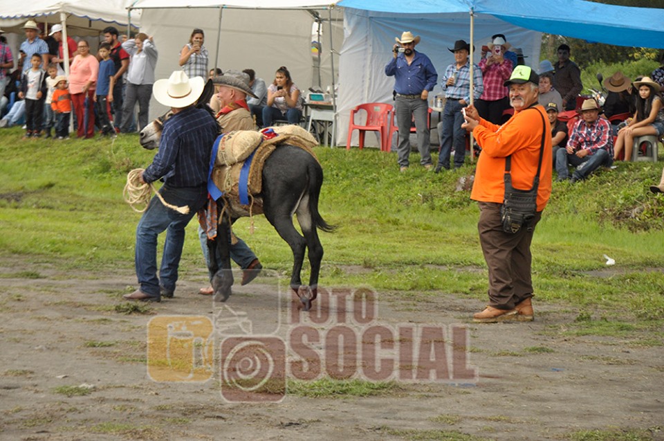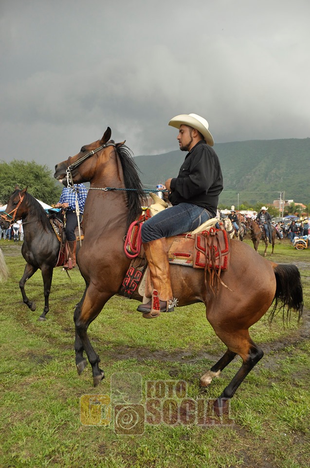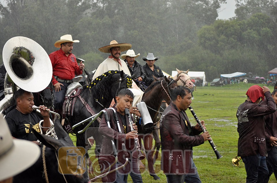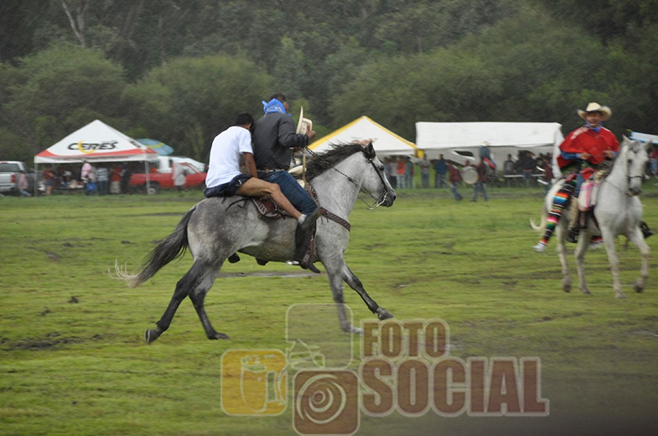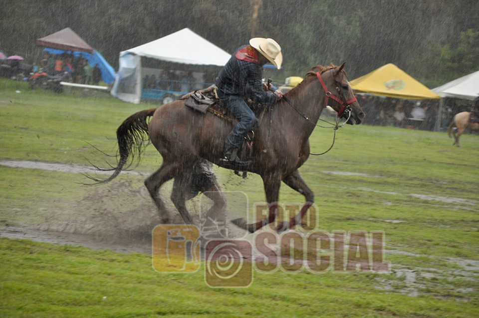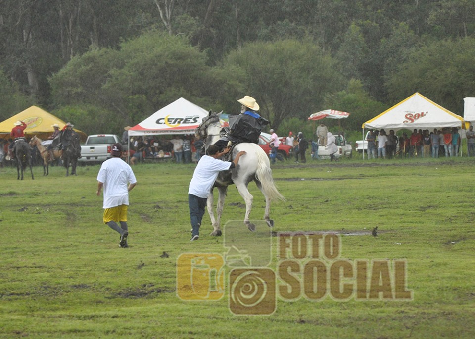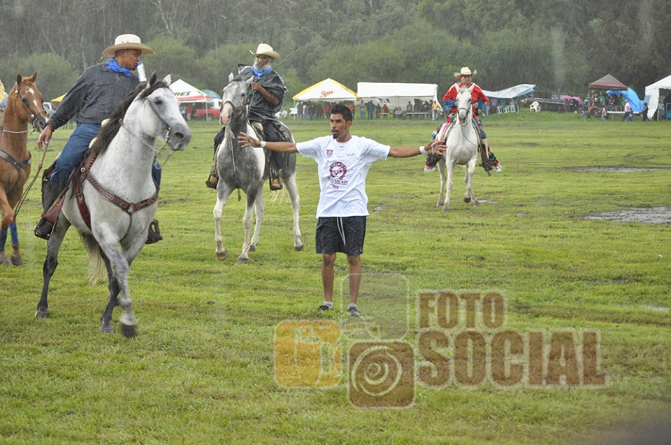 Empezando el juego empezó a caer una muy buena tormenta que no desanimo ni a los jinetes ni a los arrieros y con algo más de peligro por lo resbaloso de la cancha, comenzó el juego que consiste en atrapar a los caballerangos, que son los bandidos, y el agua no paró.