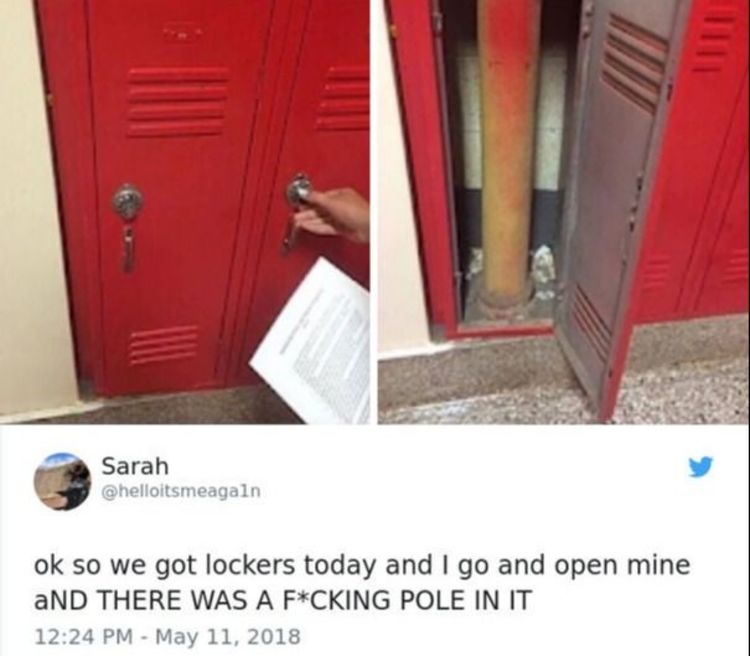 Tu primer reto en la escuela. Al menos te asignaron un casillero. Quizás no hayas leído el manual, es para guardar solo las cosas importantes.
