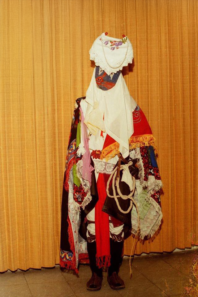 El traje del Judas de Pajacuarán es sumamente elaborado: mezcla elementos del atuendo eclesiástico colonial con adornos propios de la indumentaria indígena y campesina.