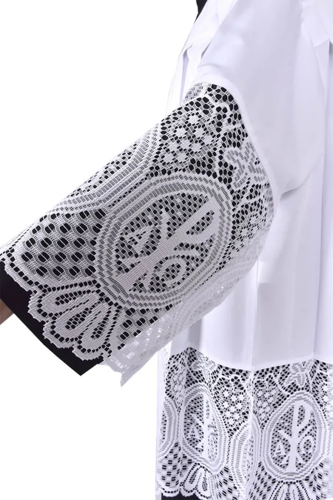 Sobre el cuerpo, el Judas porta una sotana negra, que es la túnica larga similar a la que visten los sacerdotes católicos, y encima un sobrepelliz (especie de ropón o capa corta blanca tejida a mano, adornada con terciopelo e hilos de seda)