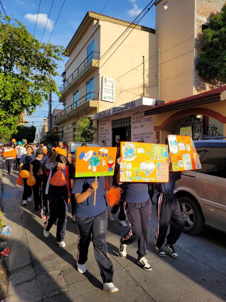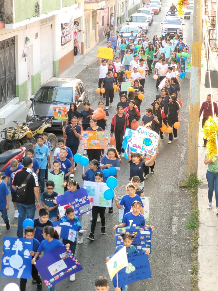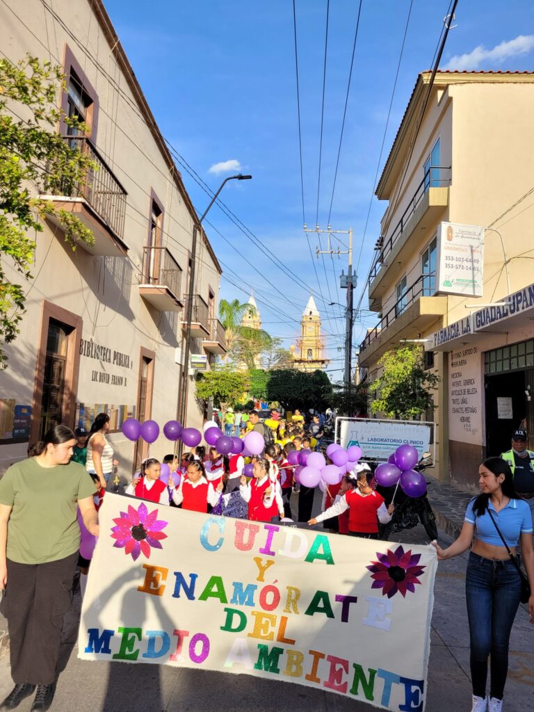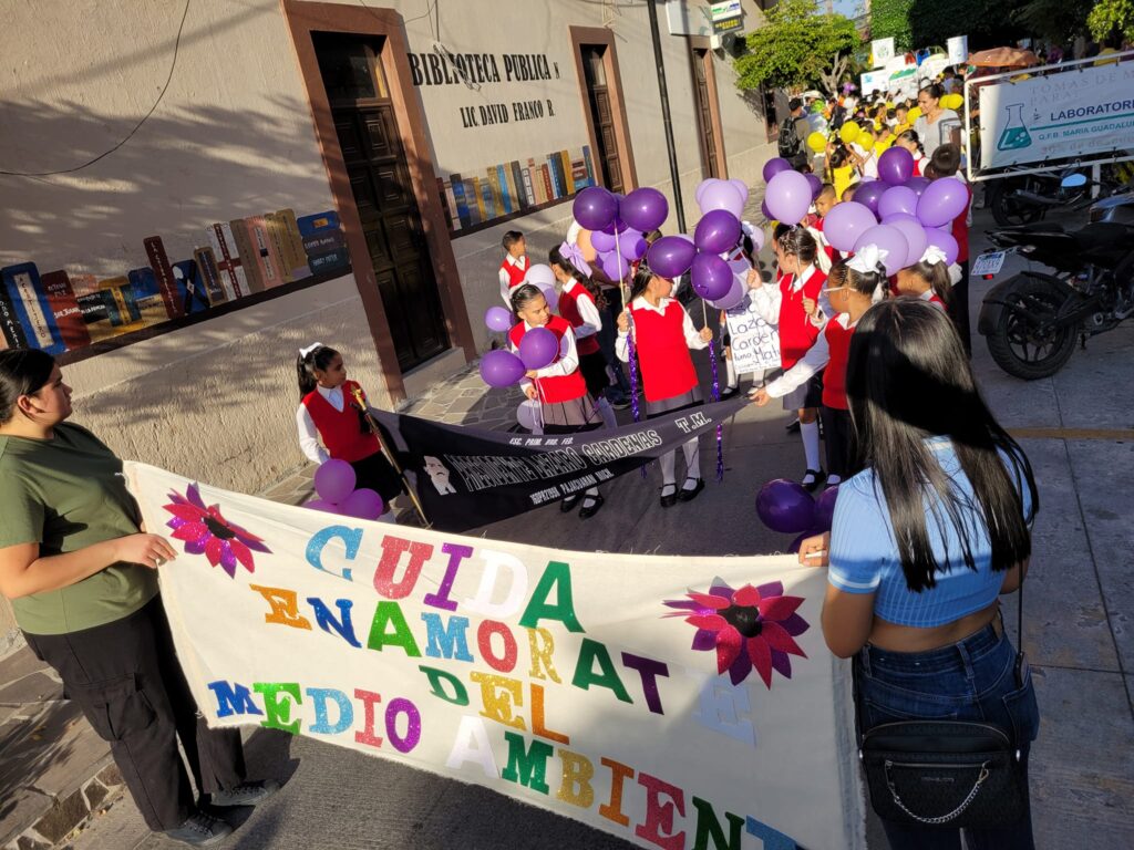 Las calles de Pajacuarán se transformaron en lienzos de esperanza y responsabilidad ambiental, donde niños, jóvenes y adultos unieron fuerzas en un desfile vibrante, llevando mensajes poderosos a través de pancartas y cartulinas.