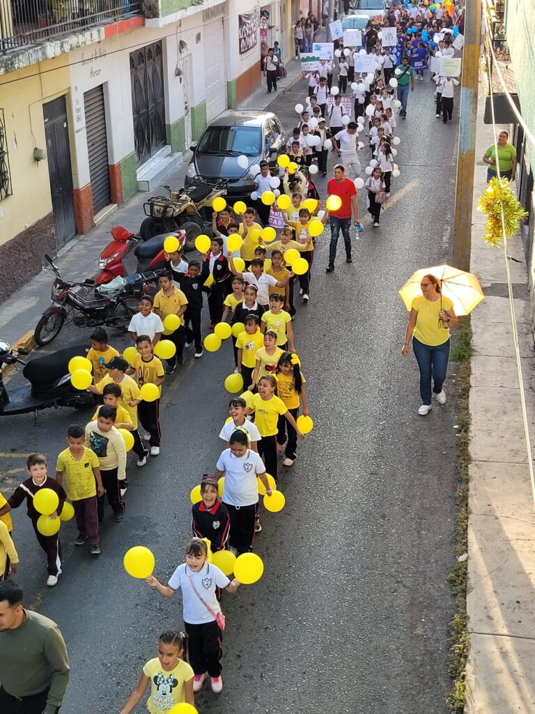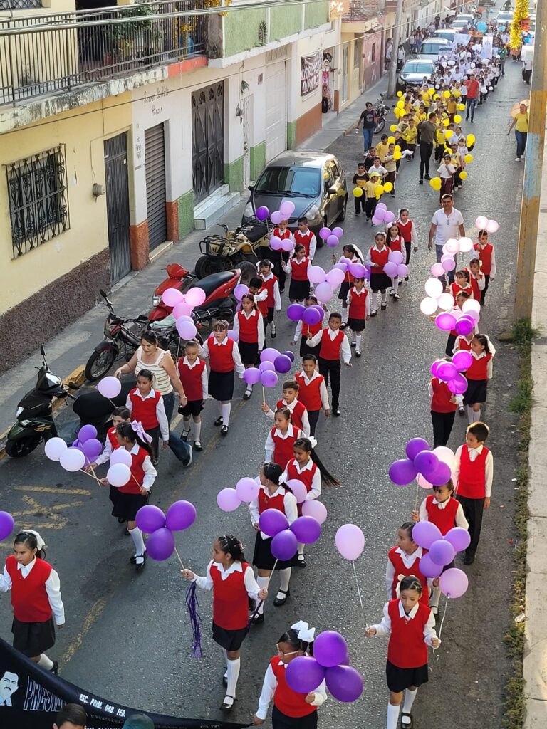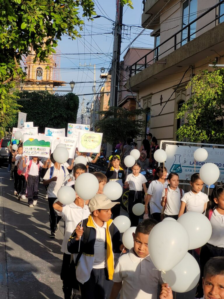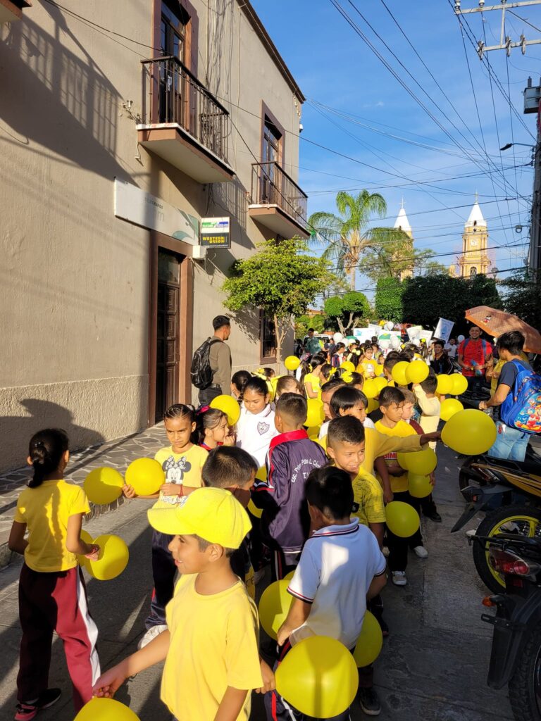 Las calles de Pajacuarán se transformaron en lienzos de esperanza y responsabilidad ambiental, donde niños, jóvenes y adultos unieron fuerzas en un desfile vibrante, llevando mensajes poderosos a través de pancartas y cartulinas.