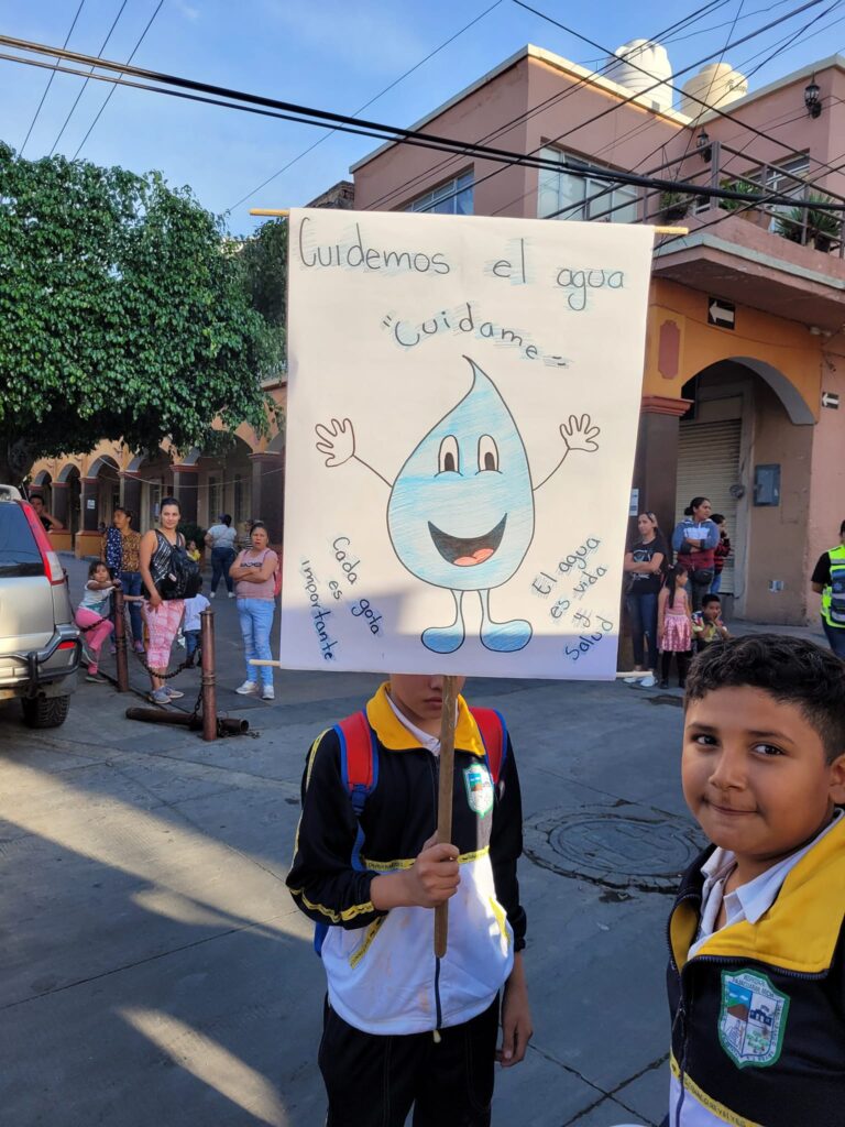 Cartulinas con gotas sonrientes y mensajes claros como “Cuidemos el agua” nos recuerdan que los cambios más significativos comienzan con acciones cotidianas y conscientes.