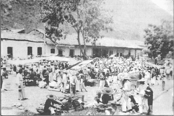 En el montón de sandías, grita con fe el sandyero ; ¡ ” Llevese a tostón la bola, calada sino la quiere le devuelvo su dinero ” ! Van y vienen las señoras, en la mano el monedero que no abren tan fácilmente, pese aquellos pregoneros… cuando aresiaba el calor ofertaban los fruteros la fruta de temporada ; ” ¡ Guayabas blancas de China ! ” decia don Molina el arriero, y un viejo pata de palo, jinete en burro matrero ofrecía el Cambalache guayabas por Fierro viejos.